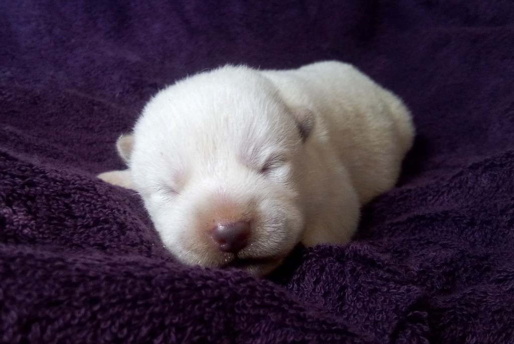 Kirin was imported from France by Lindsey Hiscocks in 2016, and has had two litters, with her first being the Ghibli litter in 2019, and second in 2022. She was the first ever Hokkaido to be imported to the United Kingdom, and had the first ever litter in the country. Kirin is FCI registered and is a carrier of CEA, and thoroughly enjoys being the fun police!