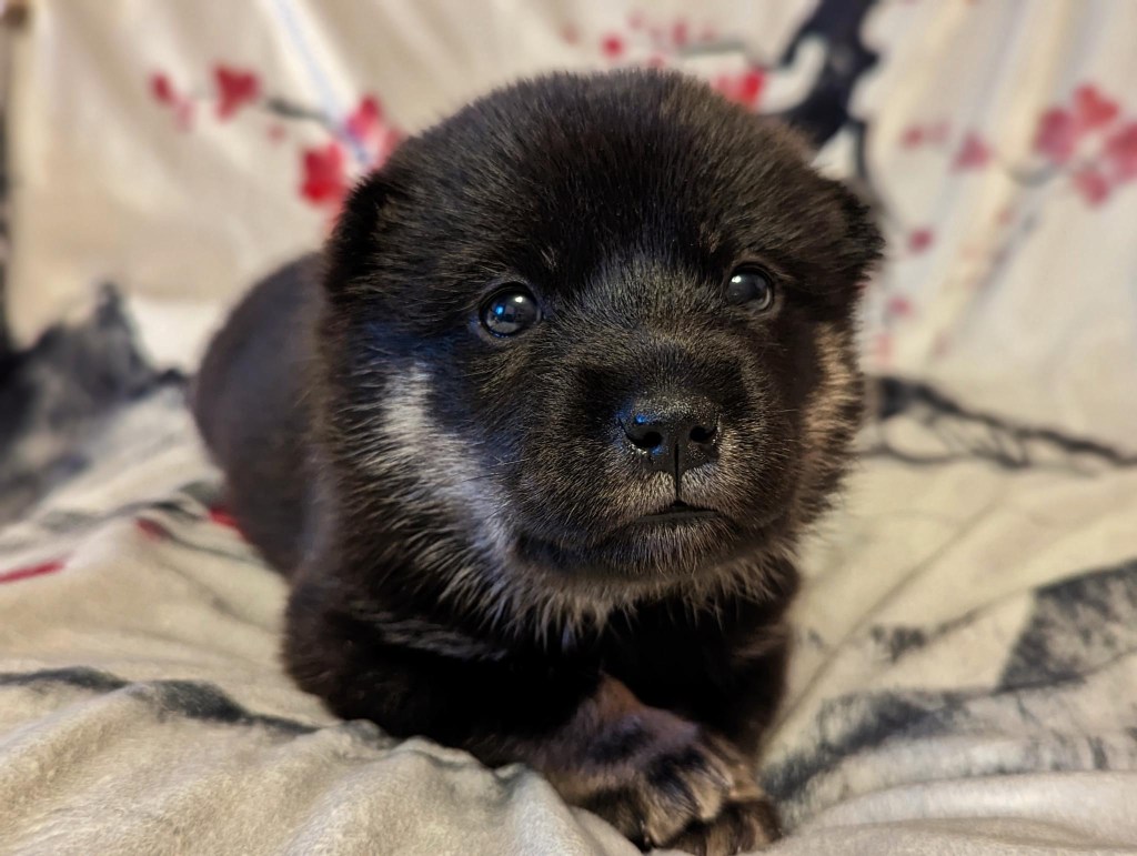 Uzume was the last born, and the only black and tan from the Okami litter in 2023 and currently the only black and tan Hokkaido in the UK. She loves annoying her aunty and meeting new people. Uzume is regularly at breed education shows, and attends FCI shows in Europe. She is entire, CEA clear, and her owners have litter plans for the future.