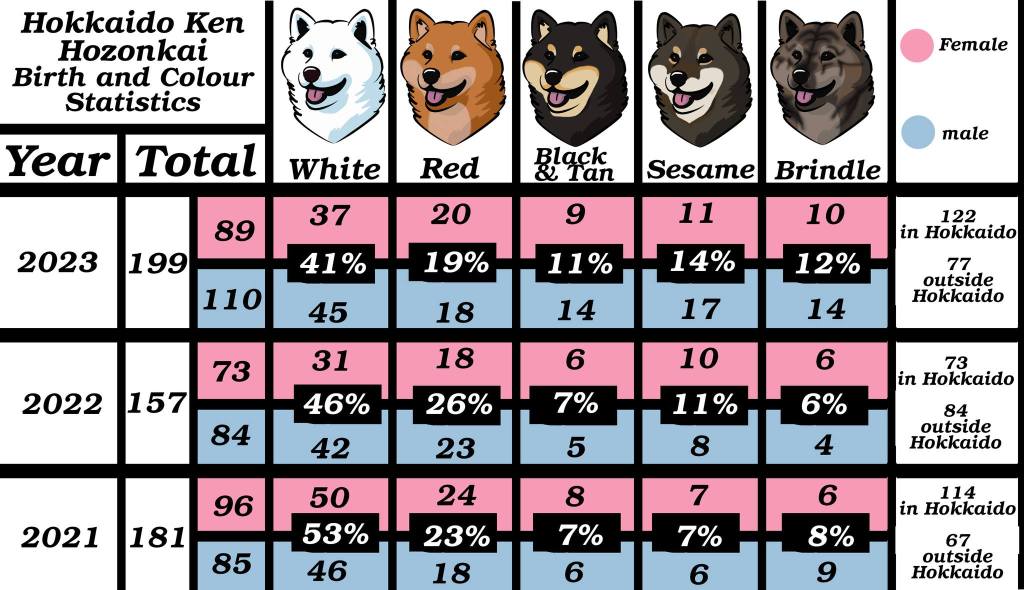 Hokkaido Ken birth and colour stats 2021-2023- Special thanks to Okiyama-san and the Hokkaido Ken Hozonkai for this data