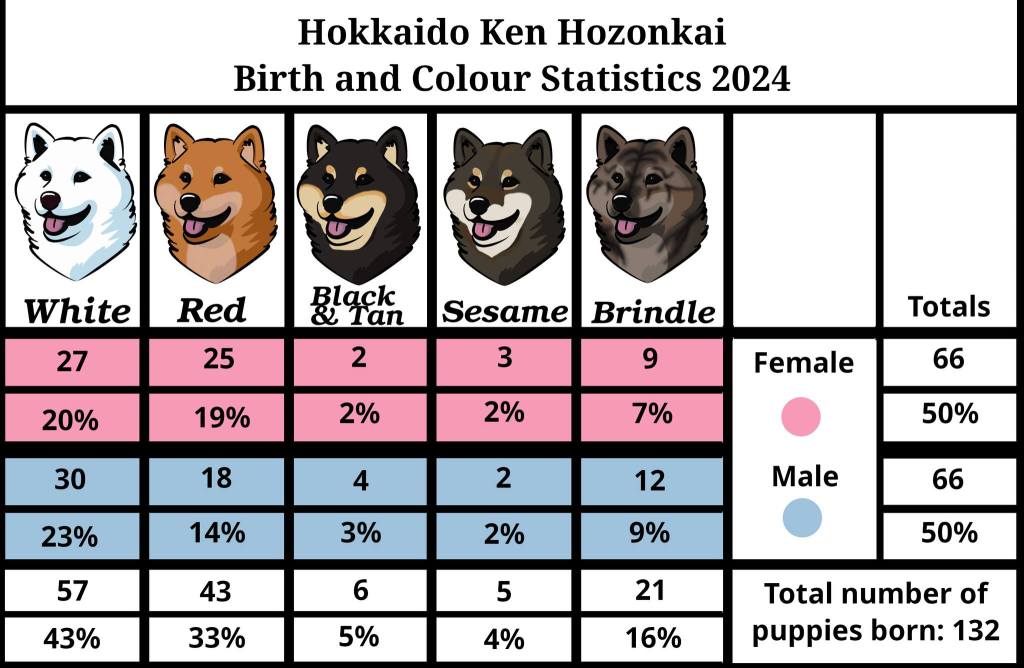 Hokkaido Ken birth and colour stats 2024- Special thanks to Okiyama-san and the Hokkaido Ken Hozonkai for this data